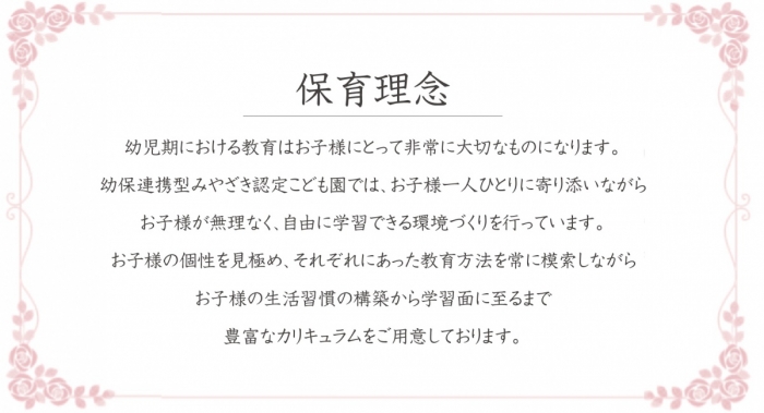 平成28年4月1日より「みやざき保育園」から「みやざき認定こども園」へと移行いたしました。みやざき認定こども園として今後とも宜しくお願い致します。