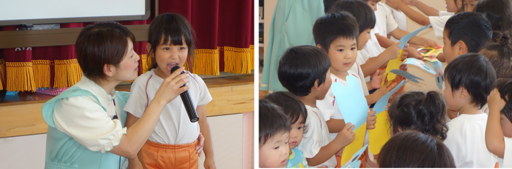5月のお誕生日のお友達をみんなでお祝いして、お祝いされたお友達もみなさんとても嬉しそうでした♡今月のお楽しみ会ではおむすびころりんの人形劇も上映されました。劇中に出てくる「おむすびころりん♬すっとんとん♬」のねずみさんのセリフと一緒にみんなで歌っている様子がとてもかわいかったです☺