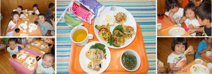 給食タイムでもお楽しみ会の特別メニューでいつもとは少し違う特別な気分を味わいながら、みんなで「こいのぼり可愛いね~」と言い合ったり、「僕は今日のお野菜も全部食べれるよ!」と言ったりみんなそれぞれお楽しみ会を楽しんでくれているようでした✿