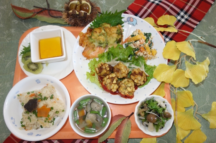 また今月のお楽しみ会メニューは11月24日がちょうど「和食の日」ということで和食中心で秋の味覚満載のメニューとなりました♬