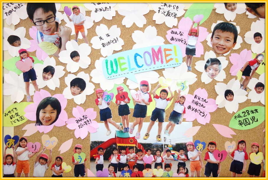 下の写真は卒園生のお母さまが作って下さったWelcomeボードです♬