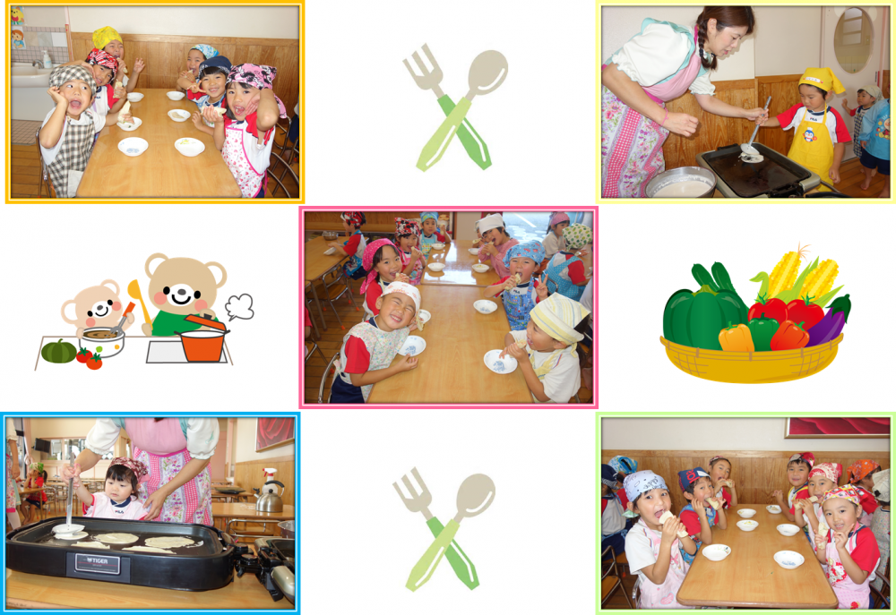 2歳児さんから参加し、みんなで慎重にクレープ生地を焼いていきます!そっと、そおっ~と焼いていく姿がとても可愛らしかったです♡