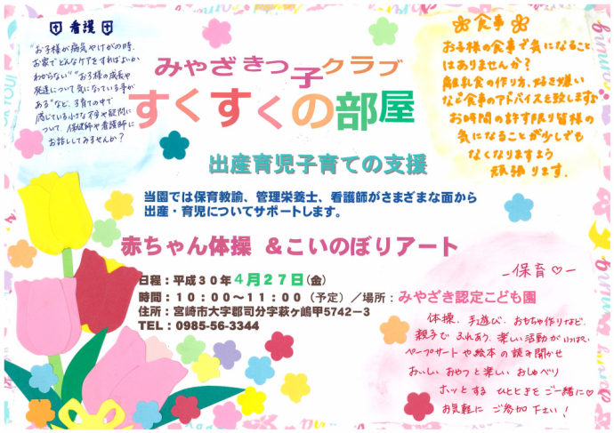 今月はお子さまの「手形、足形を使った作品づくり」と「こいのぼり寝姿アート」を行います♬