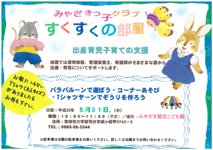 今月は「Tシャツヤーンでぞうりづくり・パラバルーンあそび・コーナーあそび」を行います☺