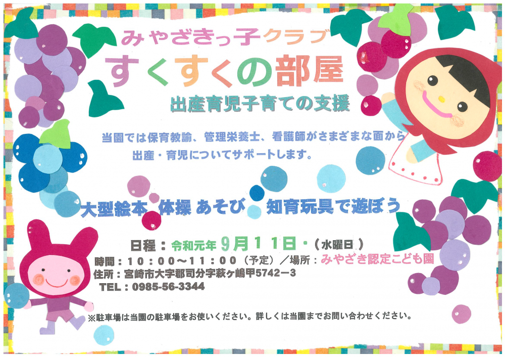 【9月】子育て支援「みやざきっ子すくすくの部屋」を開催します