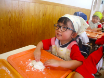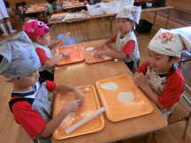 皮から生地を作り、子どもたちが麺棒で伸ばしました。