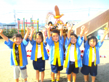 今年もハッピを着て、年長さんが園庭を