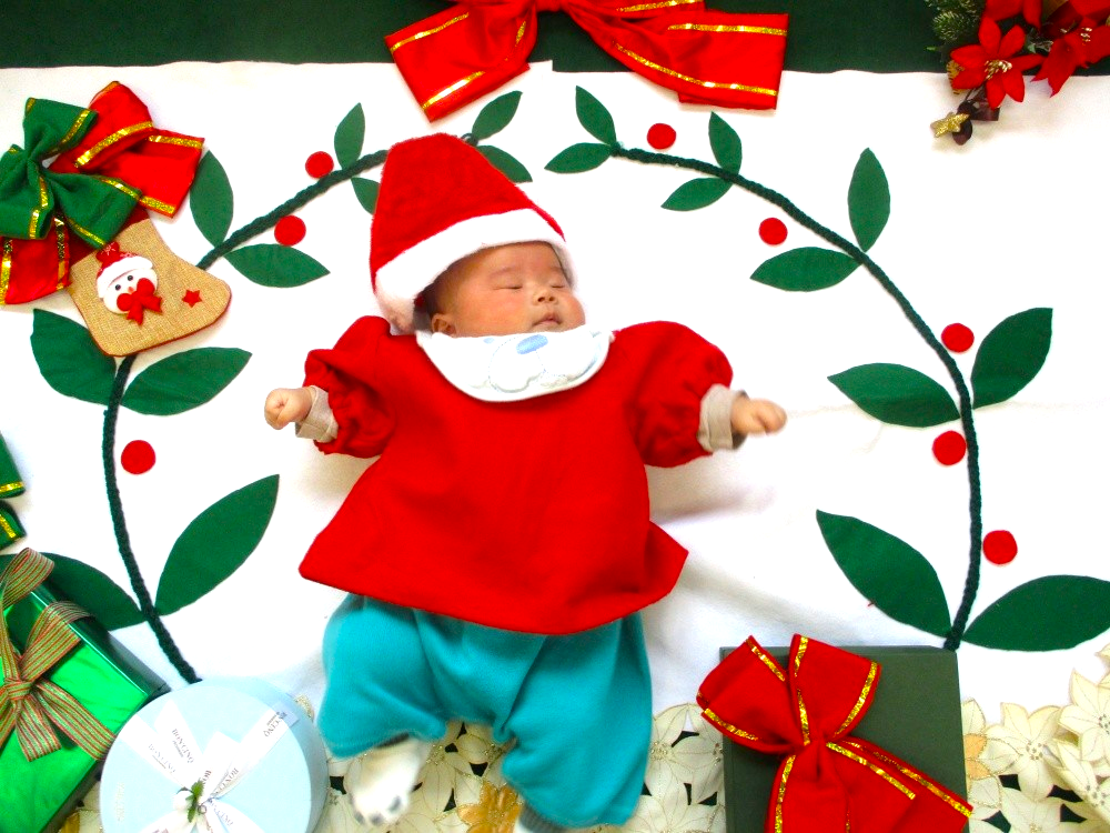 季節はクリスマスということで、サンタクロース🎅の寝相アートとトナカイやサンタクロースで飾り付けたフォトスポットでお写真撮影していただきました😊