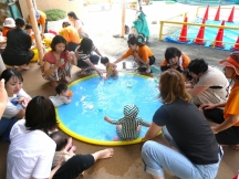水遊びでは園の0歳~1歳のお友達も一緒に水遊びしましたよ🌞