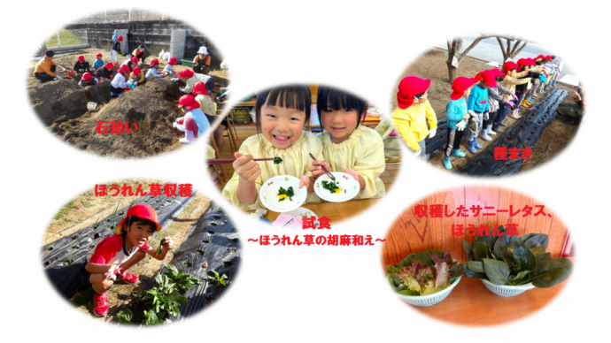そしていよいよ収穫の時期を迎え、ほうれん草とサニーレタスを収穫しました。自分達で育てた野菜を手にし、子どもたちはとても嬉しそうな表情でした😍😍給食の先生が「ほうれん草の胡麻和え」に調理してくださり、その日のおやつと一緒に食べました。「お野菜甘くておいしい!」「また育てたいね!」と嬉しそうに味わっていましたよ😉💓食への関心や育てる喜びを感じられる体験ができましたね☺️💕来週は、かぶの収穫です♪