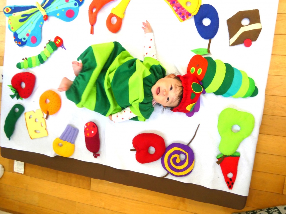 寝相アートでは、はらぺこあおむしの衣装にお着替えして、にこにこ笑顔で写真撮影🎵