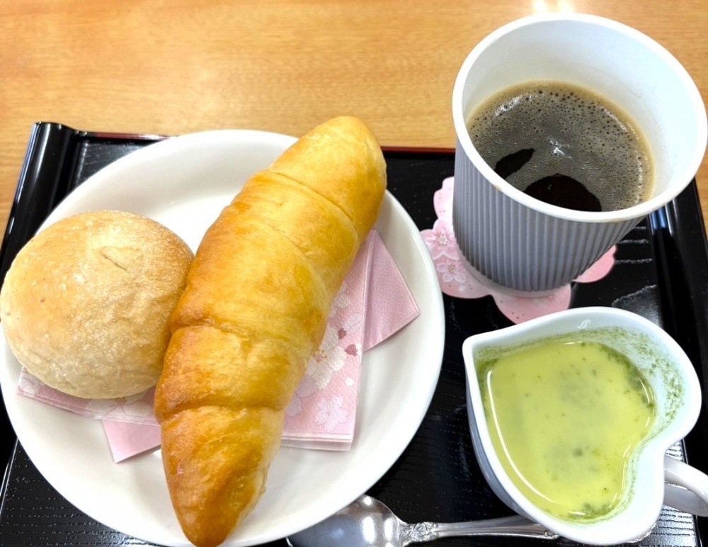 活動後はお子さまをお預かりし、保護者の方にはほっと一息つけるお茶の時間をご用意しました。給食メニューの中から園特製の塩パンや生おからのパン🥖、スキムミルク入りほうれん草ポタージュスープもご試食いただきましたよ🌸🌸